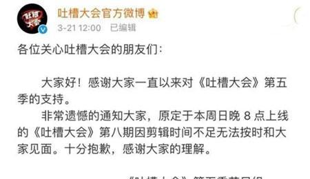 吐槽大会怎么不播了(吐槽大会禁播两期内容)