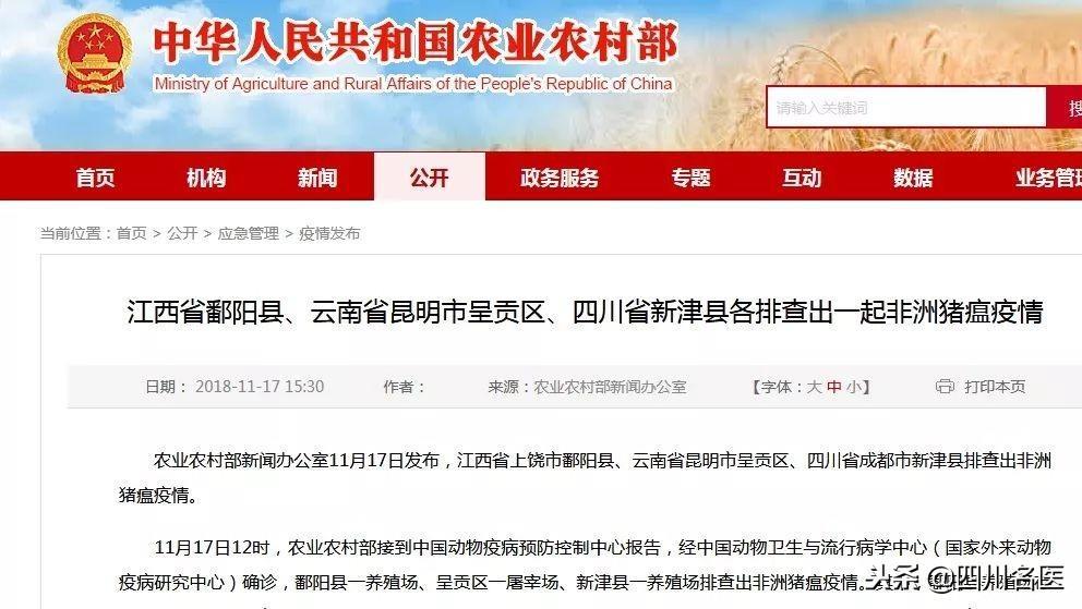 近日农业农村部通报了非洲猪瘟在少数地区发生疫情,因为有成都市新津县在列,也引起了一些成都市民的担忧。