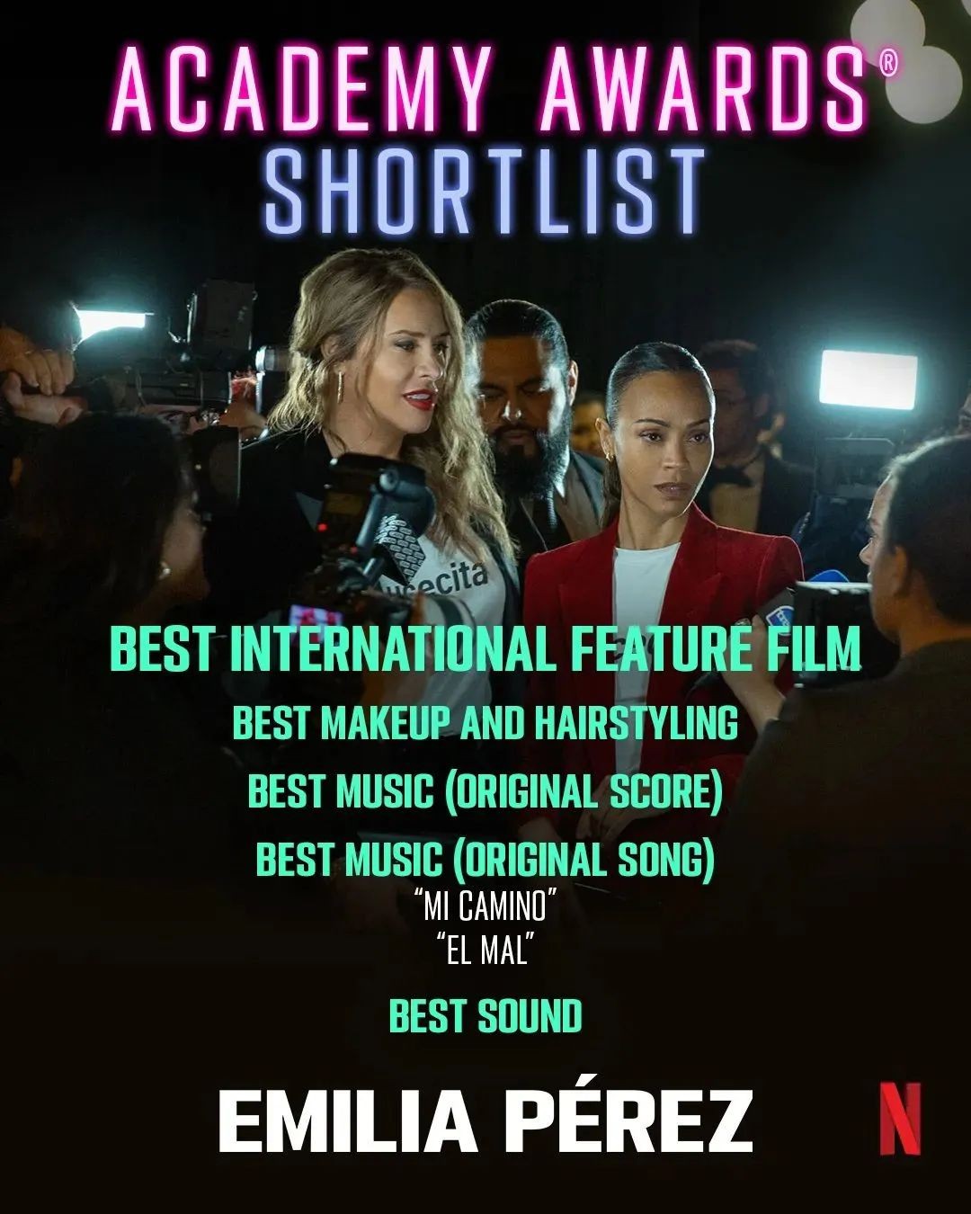 近年来,美国电影学院一直在调整奥斯卡的评选流程和标准,除了增加多样性选择和国际评委比例,还在正式提名公布前发布一份“短名单”,每个奖项约有10至20部候片的初选提名,既能提高曝光度和关注度,也给片方预留更多宣传冲刺时机。在首批公布的最佳动画短片、最佳纪录长片、最佳国际影片、最佳原创音乐等单元里,已经出现多部热门片的身影,像法国选送的《艾米莉亚·佩雷斯》不仅入围最佳国际影片,在最佳化妆及发型设计、音乐等方面也颇受美国电影学院青睐,正在热映的歌舞片《魔法坏女巫》也获得多项提名。