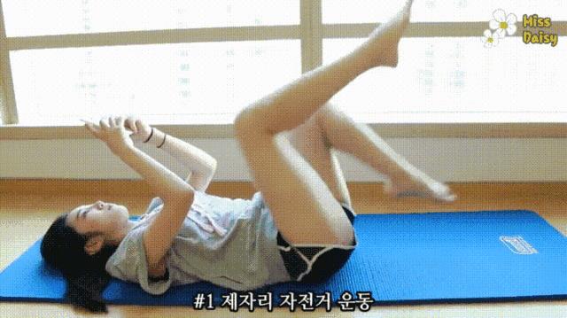 空中自行车:每天坚持50~100个,躺在瑜伽垫上看着手机就能瘦腿。