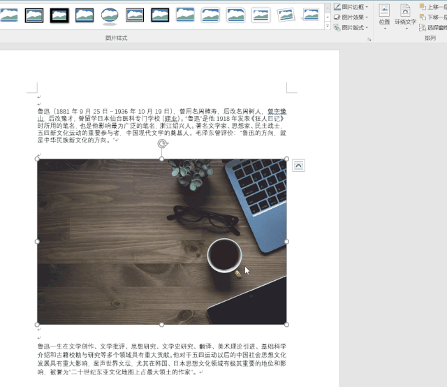 点击【文字环绕】,只需要选择任何一种方式就可以了。
