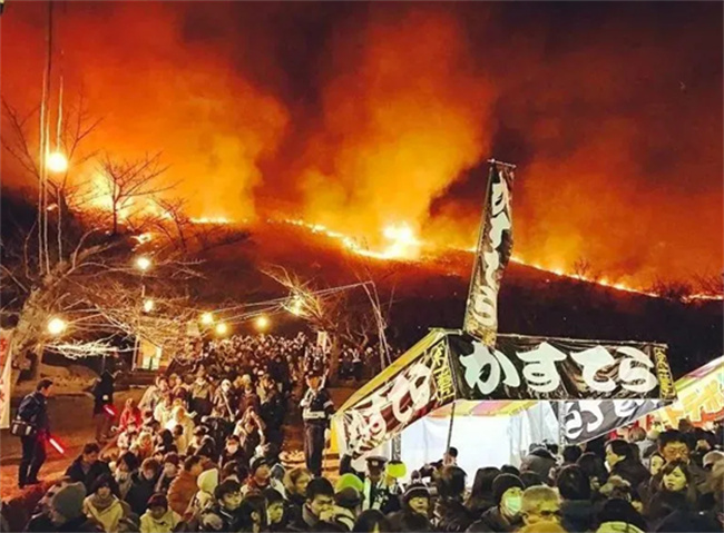 在日本每年的1月,第4个周六就会在若草山放火烧山,举行若草烧山疑是是一种较为特殊的节日,到目前为止已经延续了有着几百年的时间,有人说是18世纪就已经开始的奈良线的342公尺高的山体被整个焚烧掉。据说是为了消灭有害生物驱逐野猪的一种办法,把一些害虫的幼虫虫卵,还有土壤之中的病毒都给烧掉,不用再继续喷洒农药,种出来的粮食就非常的好,对身体有利。