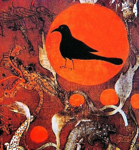 三、昂日星君为什么是只大公鸡呢?这和太阳有关。大家疑问就来了,昂日鸡明明在天象是属西方七宿的,跟日出东方的太阳南辕北辙啊。这是由于我们仰观天象的原因,这时观察对象与观察者方向是相反的!所以昂日星君真出东方,而且与太阳有关。大家从神话传说中,都知道太阳里有神鸟,名“三足金乌”,就是三只脚或脚三趾的金鸡。此鸡为太阳至精所化。《山海经·大荒东经》也说“汤谷上有扶木,一日方至,一日方出,皆载于乌”;《淮南子·精神篇》中说“日中有踆乌”,郭璞注解说“中有三足乌”。