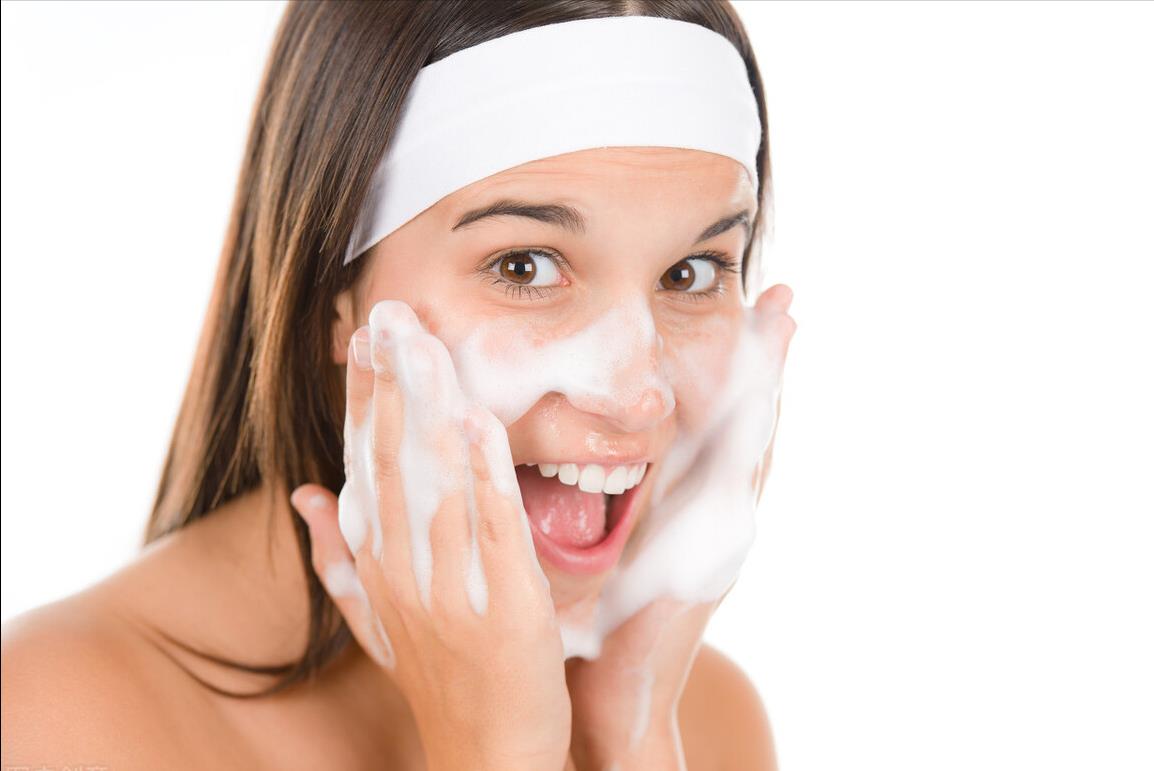 1、洗脸,首先早晨洗脸清洁面部是必不可免的。用温水把脸部浸湿,取适量洗面奶,把洗面奶揉搓出细小泡沫后,然后均匀涂抹在脸上,用手指画圈按摩,再用清水冲洗干净。