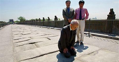 2005年5月19日10点45分,一个来自日本的耄耋老人,缓步走上因久经风霜而凹凸不平的北京卢沟桥桥面,走到桥中间时,他突然双膝跪地,面向西南,默然垂首,他就是91岁的日本侵华老兵本多立太郎。
