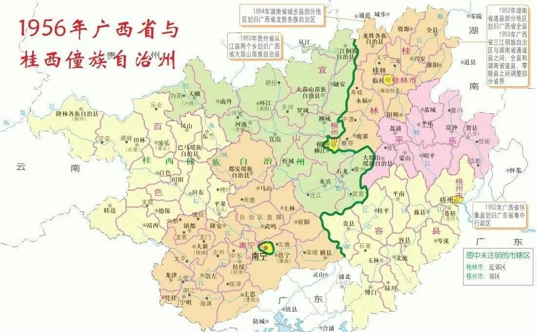 解放后广西省短暂分成桂西壮族自治区和广西省