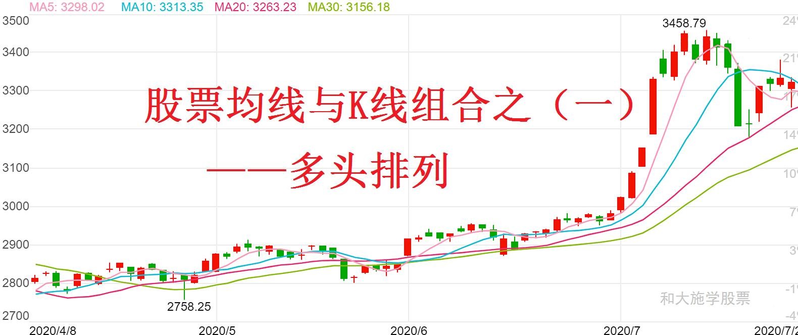均线多头排列的股票在形成初期是比较好的买点,若是等到所有均线都呈现多头排列,并且股价已经有过一波明显涨幅,均线多头排列已经持续一段相当长的时间。总的来说,无论大盘还是个股,当均线出现多头排列时,都表明买盘力量较强,做多力量正在控制局势,这是一种典型的看多做多信号。投资者遇到此种均线组合,要以持股待涨为主。