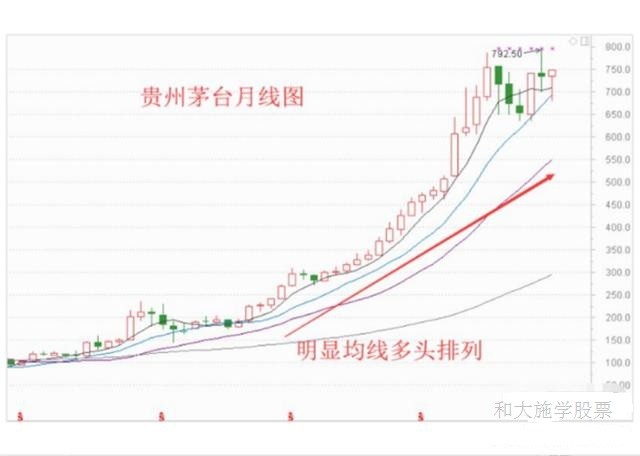 均线的多头排列,是指短期均线在长期均线的上方,并且均线向上发散。一只股票的均线多头排列,表明短期内买进该股的投资者,平均成本超过了长期持有该股的平均成本,短期内新进场的投资者愿意用高于长期平均成本的价格来购买股票。