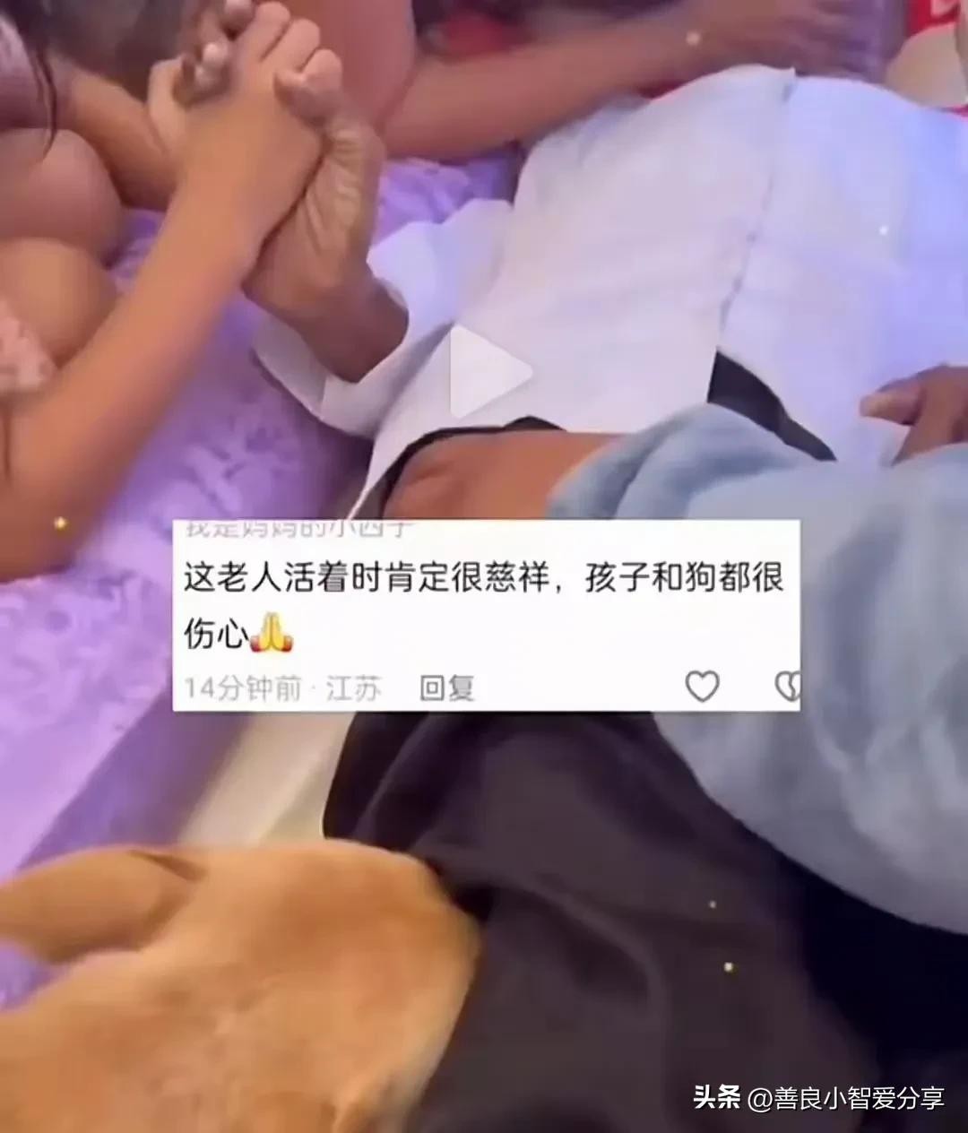 狗子的脸上,眼泪和鼻涕糊成了一片,毛发都结成了绺。老人的女儿在哭泣中试图用毛巾给它擦拭,但狗子却扭头躲开,继续将脑袋往老人身上拱。这细节太戳人心了,它连悲伤都要守着主人,这份深情厚谊,怎能不让人为之动容?