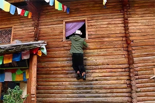 摩梭人的房子都是由木头一层层堆砌起来的,爬起来比较方便。男人爬上去之后,要把自己的帽子挂在窗户上,提醒别人自己正在约会,不要前来打扰。