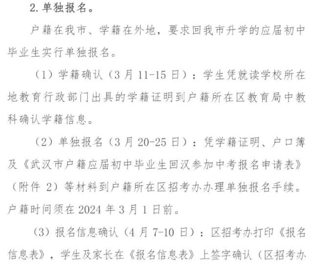 2024年武汉中考实行网上报名,具体报名入口及时间流程如下——