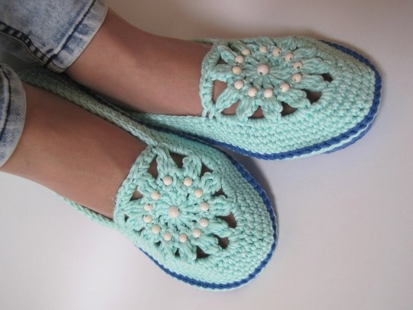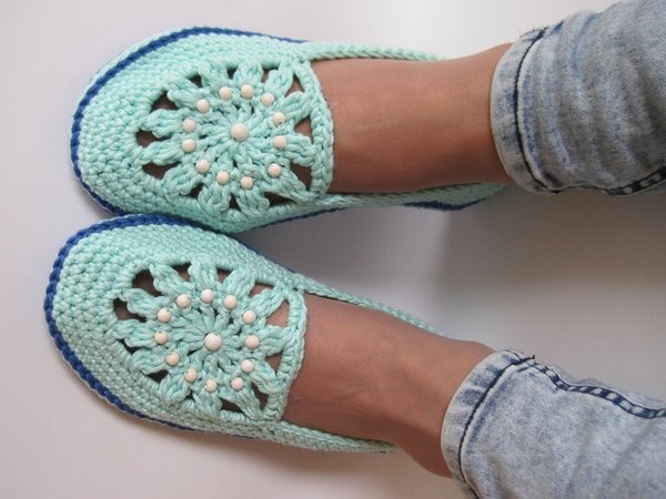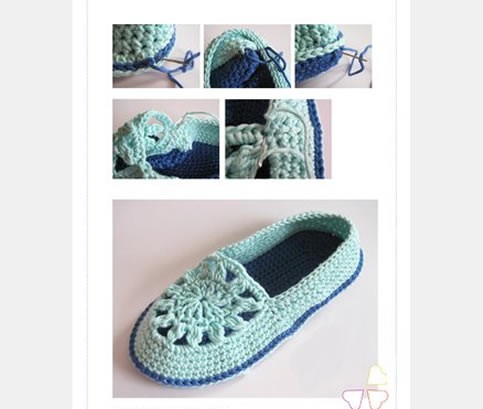 手工钩针编织的春夏季居家毛线鞋漂亮图案花样,编织步骤说明