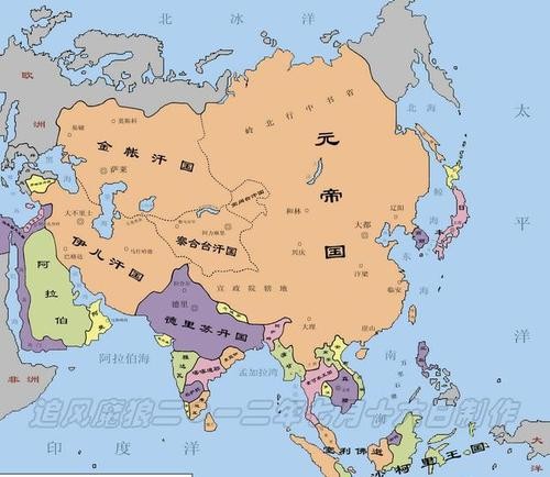在北方,北到北冰洋;西起今 额尔齐斯河;东至鄂霍次克海。在东部,拥有朝鲜半岛东北部。在西南,包 括今克什米尔地区以及喜马拉雅山南麓的不丹、锡金等地,今缅甸东北部和 泰国北部.(包括现在的蒙古、西伯利亚、哈萨克斯坦、吉尔吉斯斯坦、越南北部、伊朗东部。忽必烈曾打到多瑙河) 。