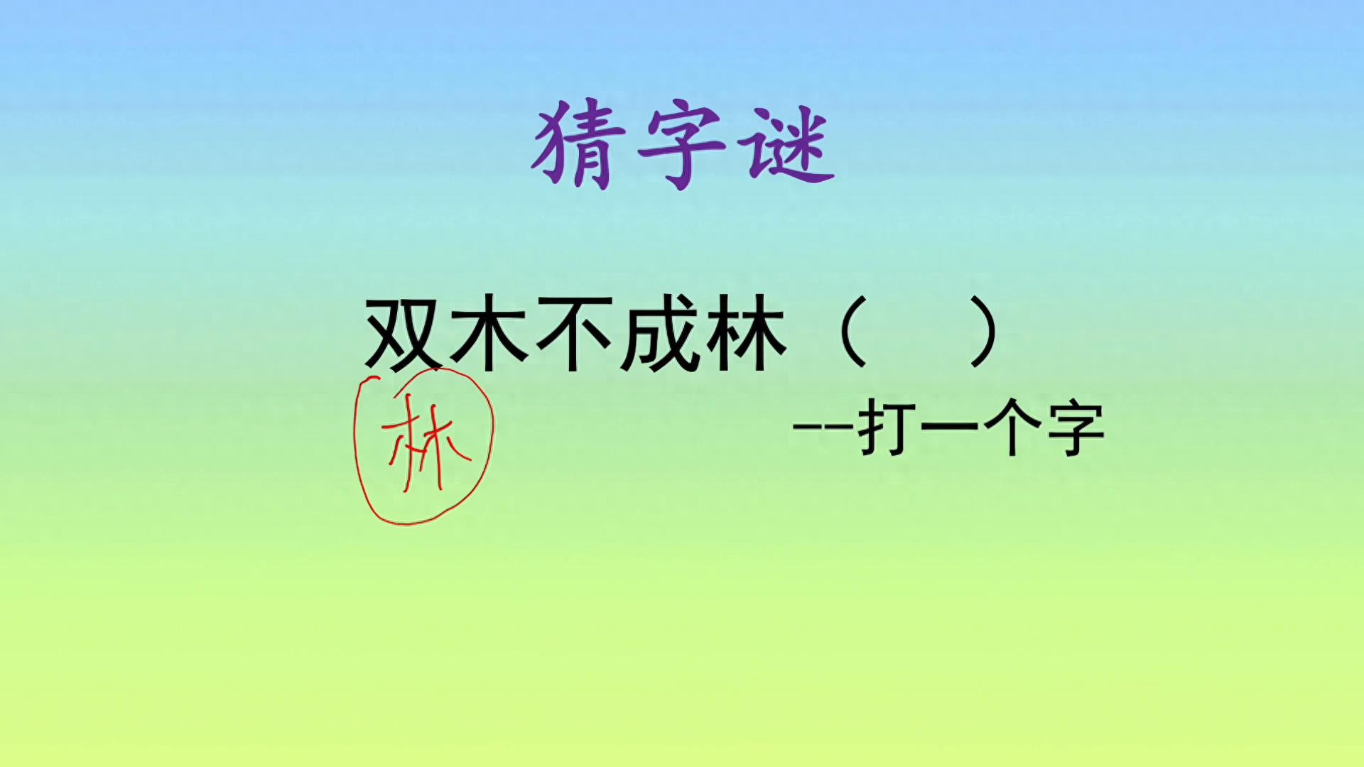 这个字是不是已经超出了你的认知范围?哈喽大家好,老师又来带大家一起学知识了。双木不成林,要猜一个字,双木也就是两个木。两个木一般情况下首先想到的就是这个林字,但是这个地方奇怪,就奇怪在它说不成林,也就是说不能够猜这个林字。所以这个字谜就有点超出大家的认知范围,和平常所了解的不一样。
