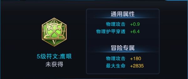 鹰眼:物理攻击+0.9、物理护甲穿透+6.4