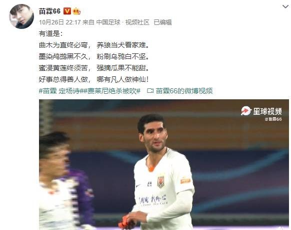 费莱尼绝杀被吹,解说苗霖赋诗:曲木为直终必弯,养狼当犬看家难
