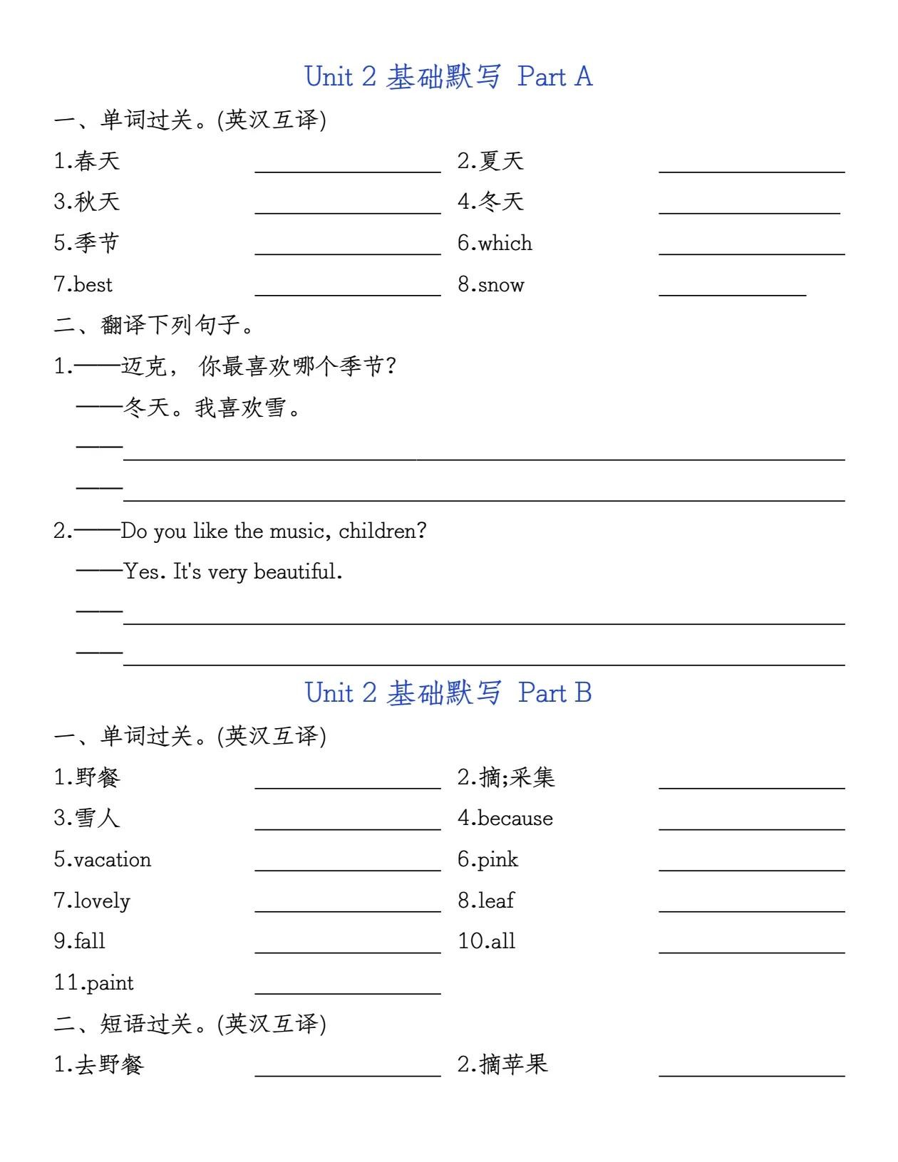 五年级下册英语基础知识默写卡