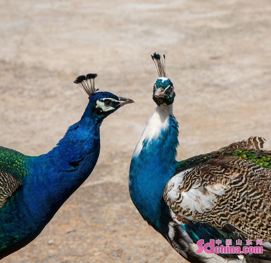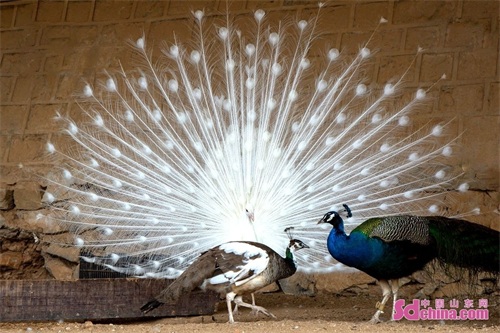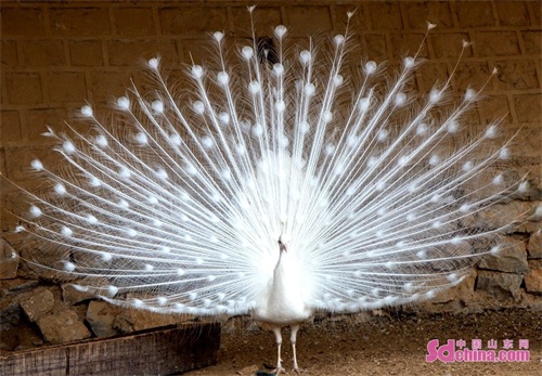 近日,济南跑马岭景区上演白孔雀开屏的惊艳一幕,由于十分罕见,引得围观游客纷纷惊呼。据了解,国际上公认的孔雀品种只有蓝孔雀和绿孔雀,白孔雀一般指人工繁育下野生蓝孔雀的变异品种,数量稀少,是极为珍贵的观赏鸟。(中国山东网记者焦竞赛 通讯员钟福生 摄影报道)