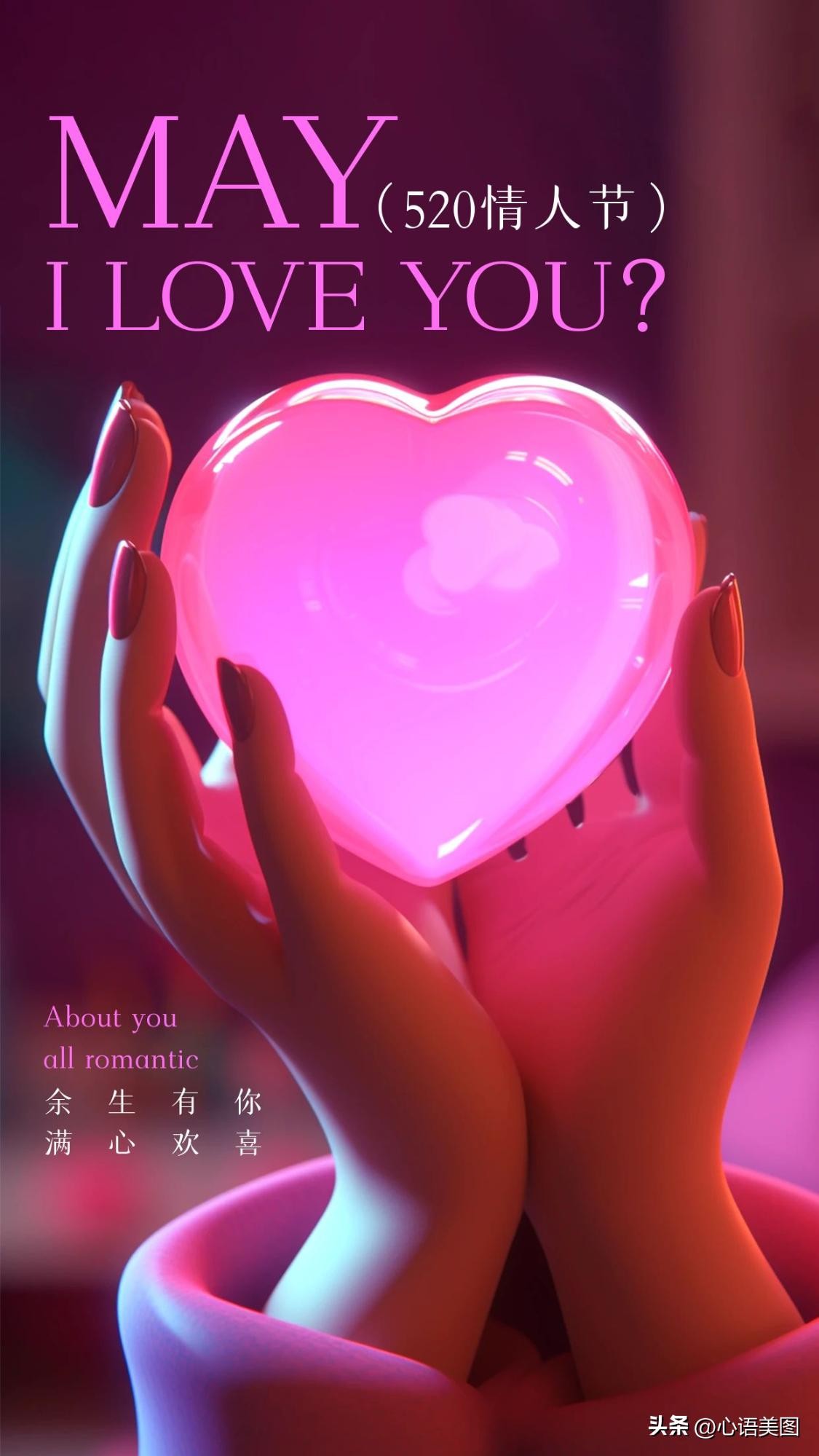 送你一颗开心,收获一颗欢心;送你一颗细心,收获一颗贴心;送你一颗真心,收获一颗芳心。520我爱你,我要送你一颗不变心,收获一颗幸福心!