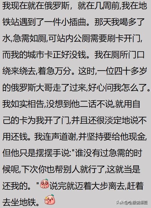 “在俄地铁站遇窘况,俄大哥帮忙刷卡开门,婉拒还钱,让我帮他人即可。”