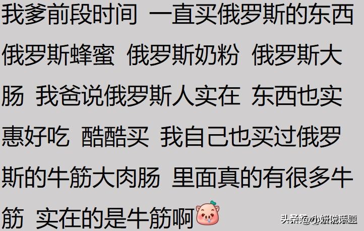 “爹常买俄货,称俄人实在东西实惠,我也买过牛筋大肉肠,里面牛筋多。”