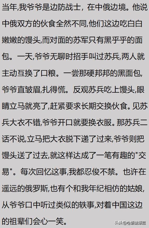 “爷爷当年在中俄边境,与苏兵互换口粮、大衣,趣事令人忍俊不禁。”