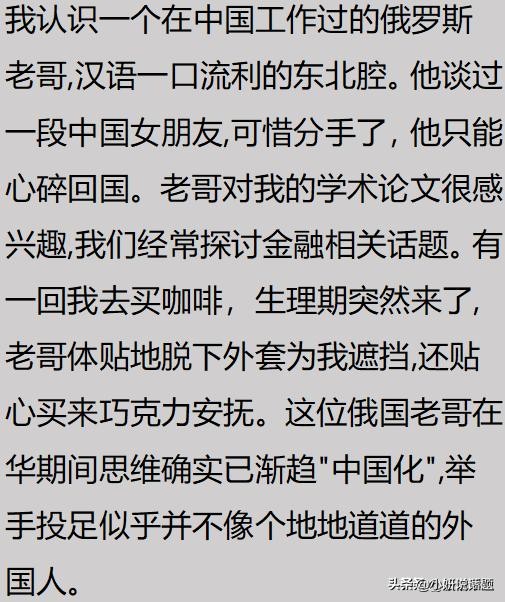 “认识汉语东北腔俄老哥,曾有中国女友,对我学术论文感兴趣且很体贴。”