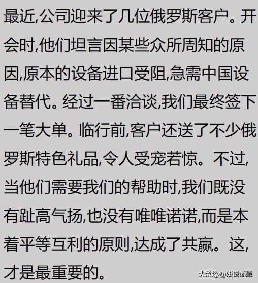 “公司迎来俄客户,因设备进口受阻签大单,平等互利合作达成共赢。”
