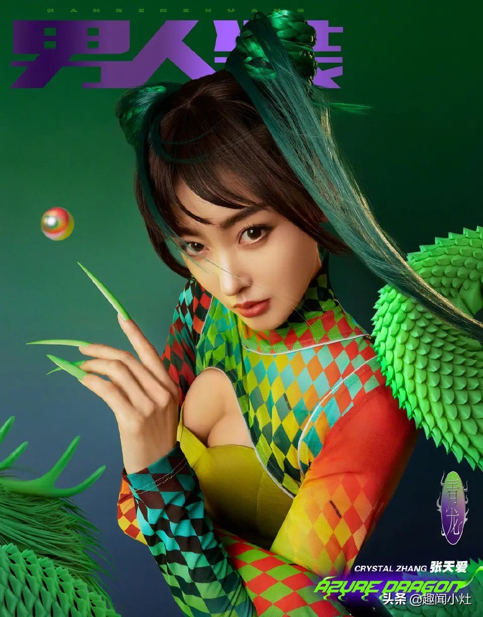 张天爱《男人装》杂志封面红青白黑四种造型,性感帅气!