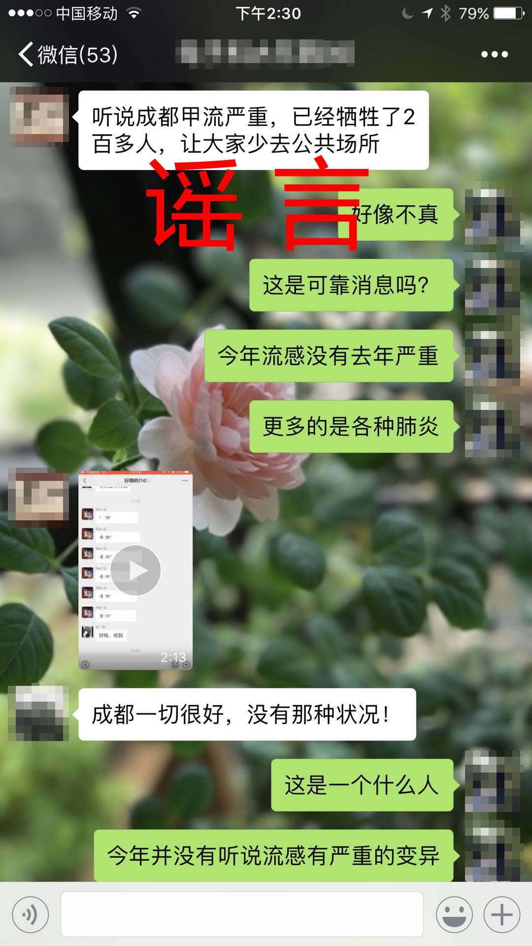近日,部分微信群在流传成都甲流传播导致多人死亡一事。此为谣言,勿信!