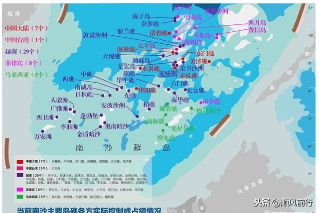 我国南沙群岛主要岛礁各方实际控制图