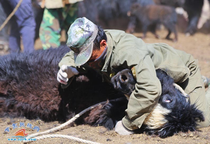 甘肃张掖网山丹讯 6月5日,山丹马场一场牧业职工们和牦牛上演了一出盛大的技能竞赛,进行了剪牛毛比赛。