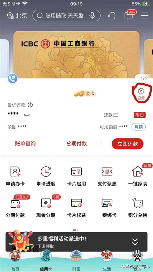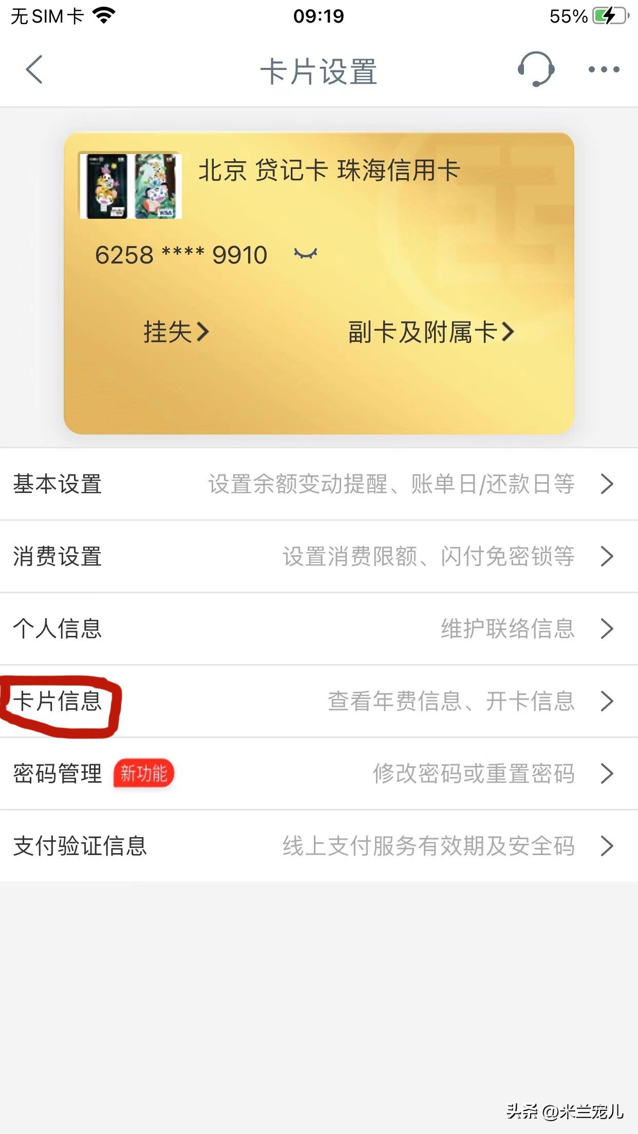 3、选择卡片信息查看详情,打开之后会显示年费是否减免