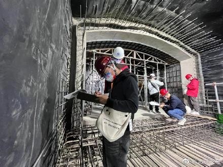 副中心三大建筑之间的轨道交通站点为北京大剧院站,它是通州规划线网M101线与M104线的换乘车站,该车站从去年5月建设实施,目前已完成70%,车站主体结构预计今年年底完工。车站建设的核心点是钢结构部分,造型就像一颗刚萌芽的种子。它在造型、加工、安装等方面都非常复杂,需要精细化施工,用钢量将达到3000吨左右。