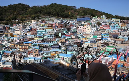 这是11月9日拍摄的韩国釜山市甘川文化村。 新华社记者 姚琪琳 摄