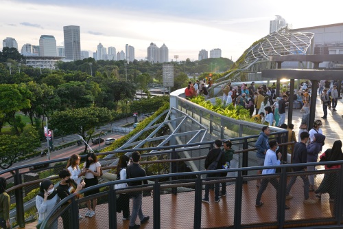 2022年1月23日,人们在印度尼西亚雅加达史纳延公园的空中步道欣赏城市风光。 新华社记者 徐钦 摄