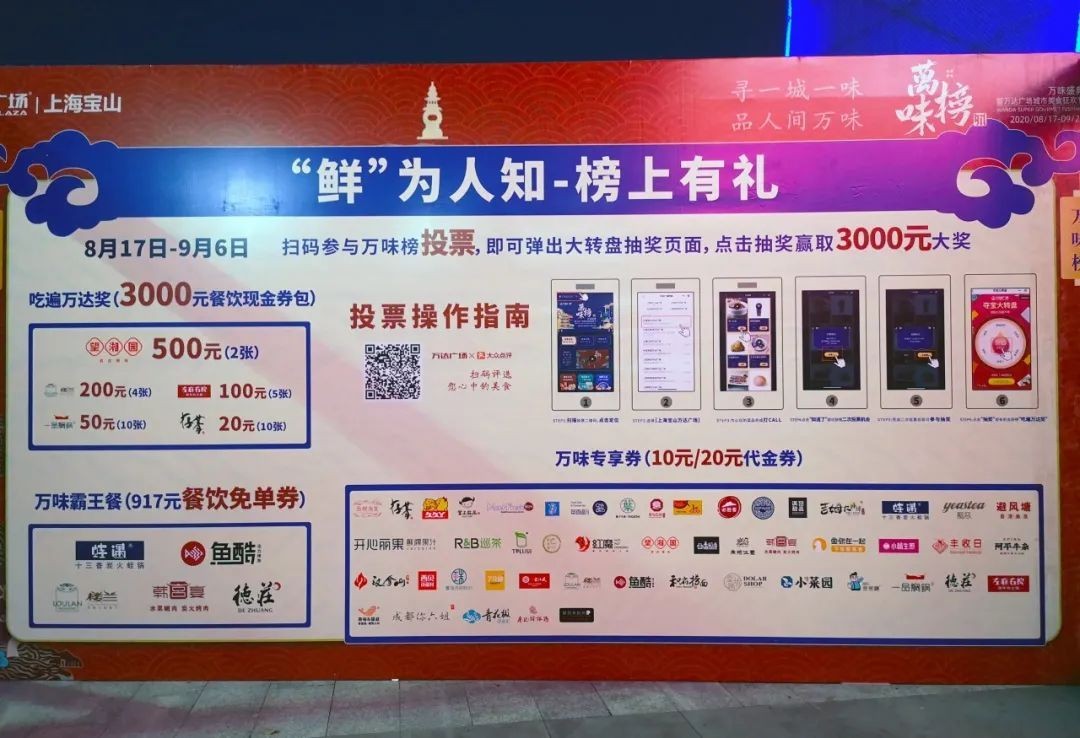 8月16日起至9月6日期间,扫码参与万味榜投票,即可弹出大转盘抽奖页面,点击抽奖赢取3000元餐饮现金券包及价值917元的餐饮免单券。