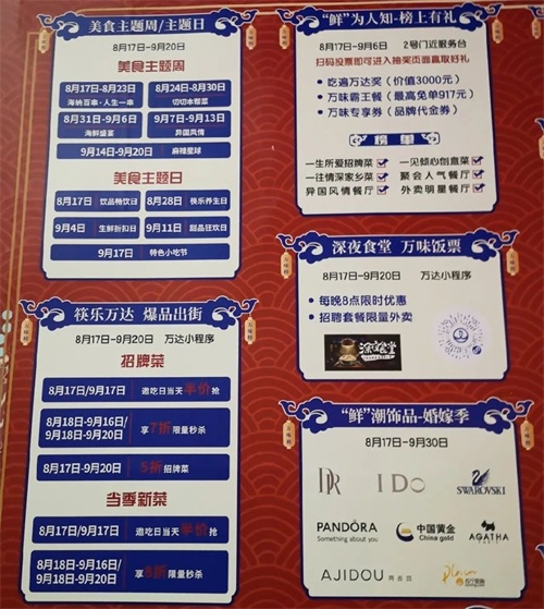 万味榜期间,增设“城市优选”榜单,将根据所在城市美食特色、餐饮商户服务品质和消费者满意度,推出万达广场城市优选餐厅,打造标杆级城市美食名片,结合万达广场线下美食主题活动,激活城市餐饮消费力。
