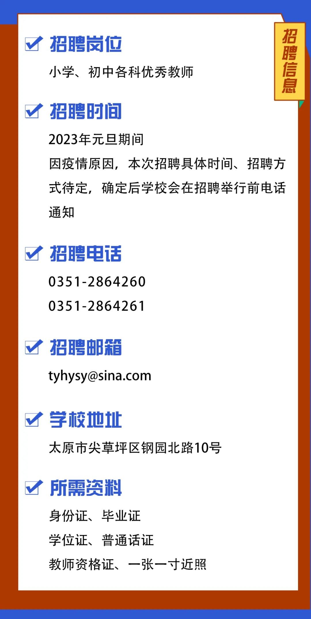 太原市鲁艺中学校2023年元旦招聘小学、初中各科教师公告