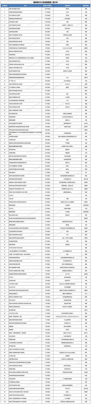 福布斯2023全球富豪榜 | 前100