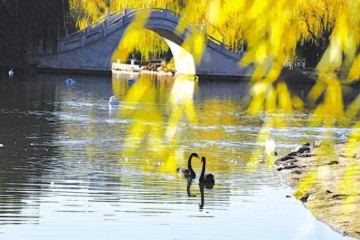 初冬时节,广平县天鹅湖湿地公园内成双结对的天鹅悠闲地在湖面游弋,或引颈高歌,或水中嬉戏,上演冬日之恋,为冬季的天鹅湖带来了别样风情。长城网·冀云客户端记者 韩晓寒 通讯员 程学虎 摄