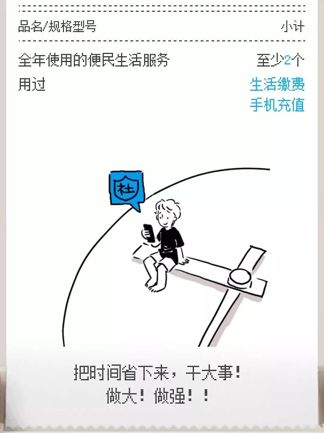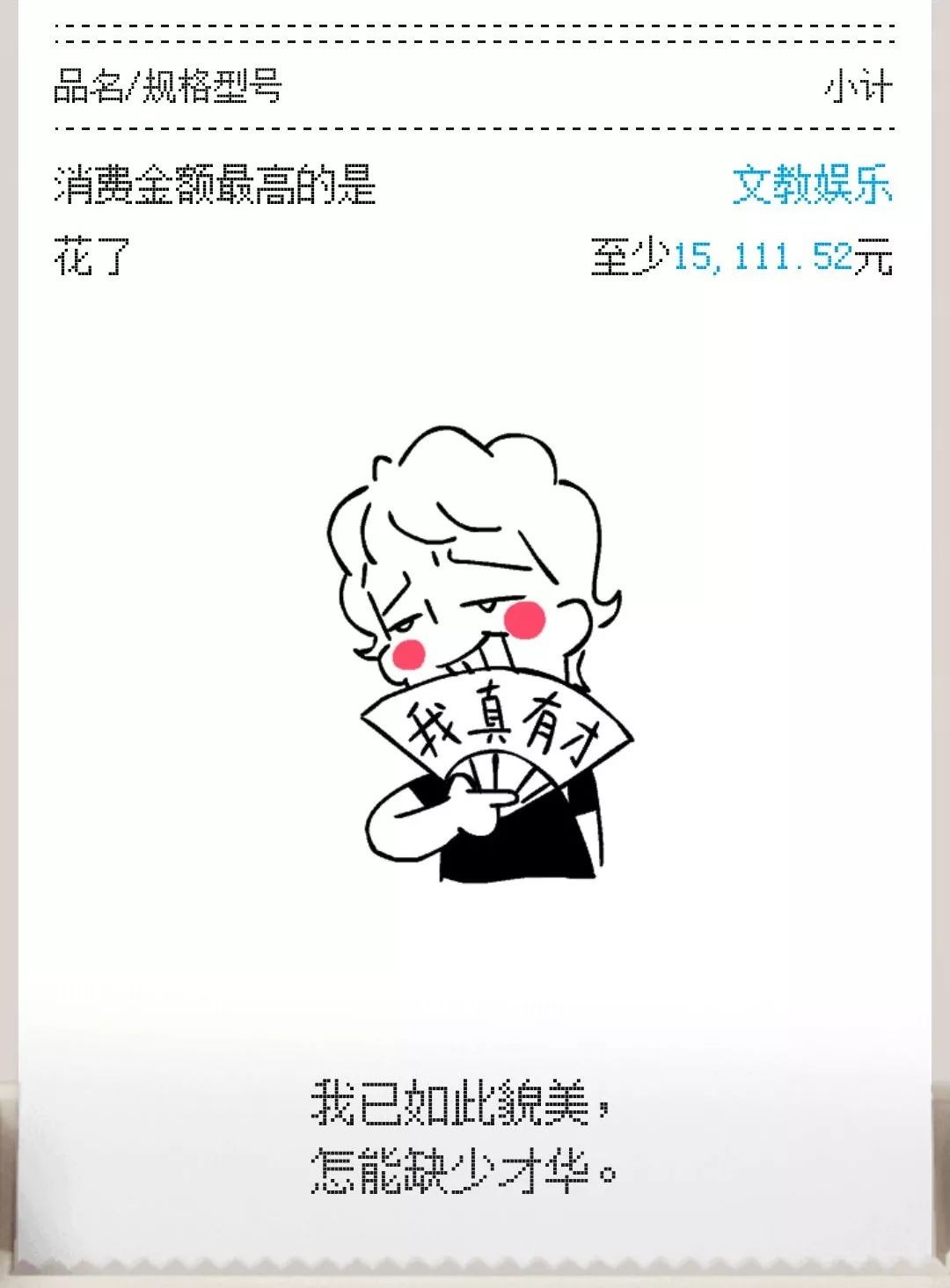 今年的支付宝账单界面和以往不同,像是一个打印机打出来的购物小票。
