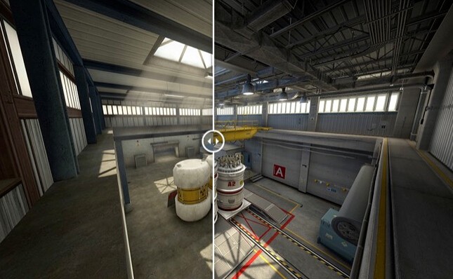 “Nuke”实为 1999 年 11 月首次登场的“de_nuke”地图,作为曾经是《CS》最具代表性的经典地图,这次重制再现身,内外构造大幅翻新,增加更多场景细节。更多新旧地图比一比,可以参考这里。附带一提,“Nuke”有收录在“Wirldfire”地图组。