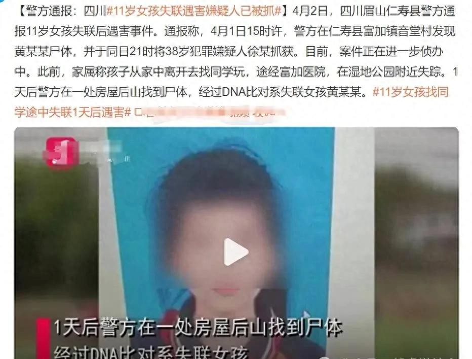 悲剧:四川眉山11岁女孩失踪案告破,嫌犯落网,女孩遭不幸遇害