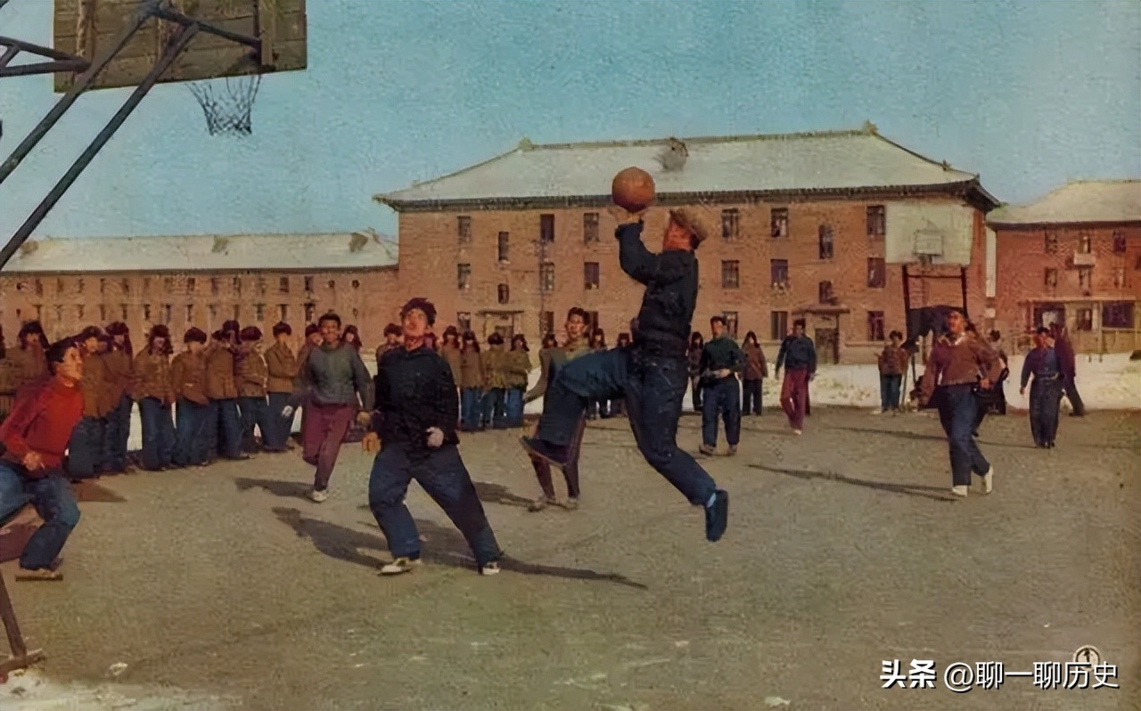这是六十年代的一汽工人们利用休息时间在打篮球。