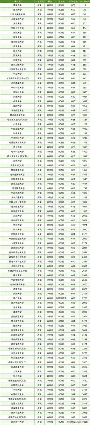 历史下我们就以北京师范大学为例,可以看到2024年的分数为646分排名为366位次。可见历史类的难度还是不小。2025年的准大学生加油吧!