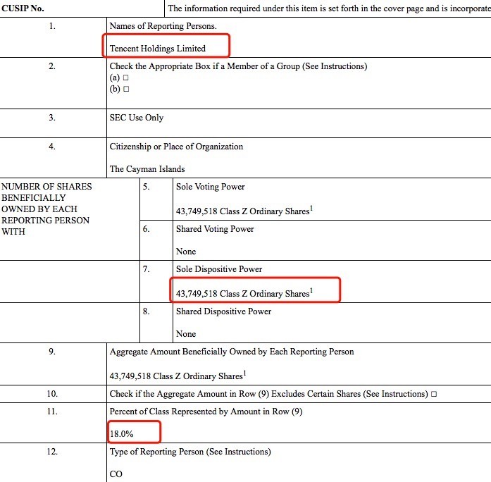 2月10日,B站递交美国证券交易委员会的股东报告被公开。报告显示,腾讯目前持有B站4374.95万股Z类普通股,占Z类股比例为18%,占B站总股本(含超级投票权Y类股票)约13.4%。
