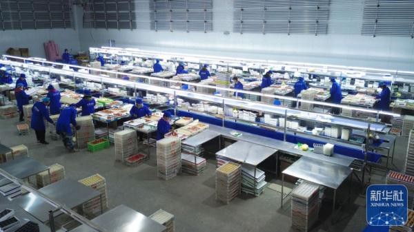 12月7日拍摄的丹东市圣野浆果专业合作社打包车间(无人机照片)。