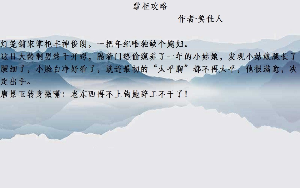 笑佳人的文没问题,文笔和质量都有保证。女主大气,男主性子冷淡不近女色,喜欢上女主后化身忠犬。推荐。