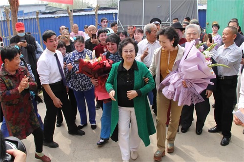 4月13日,著名评剧表演艺术家谷文月回到家乡固安,来独流兰英评剧团指导工作,受到相关领导及父老乡亲们热烈欢迎,场面感人,现场赋诗以记之。
